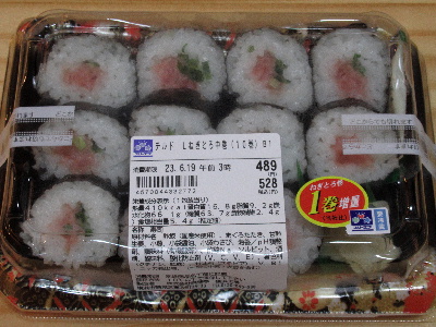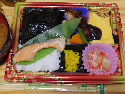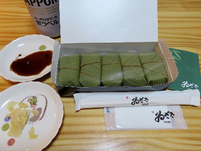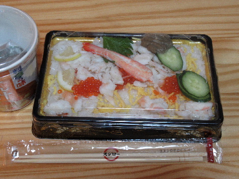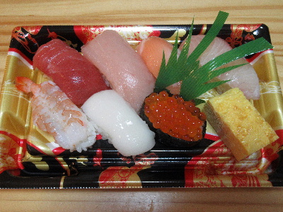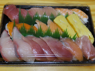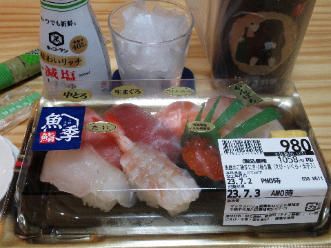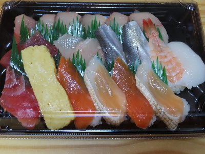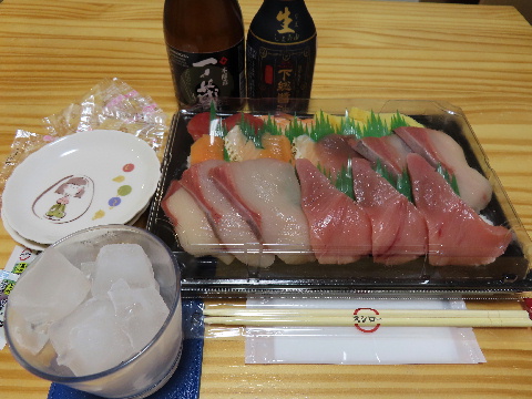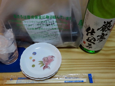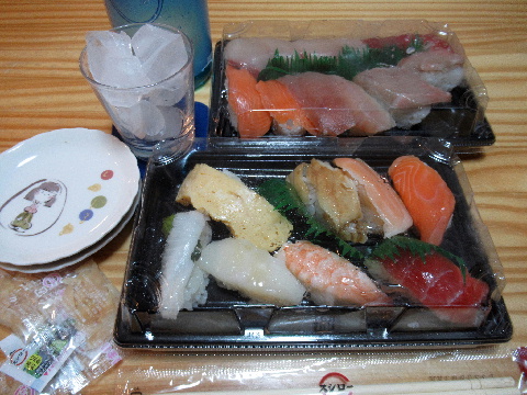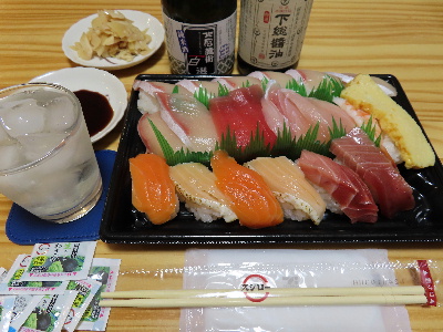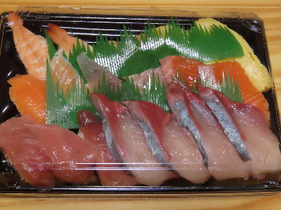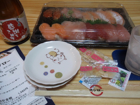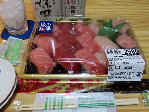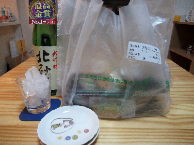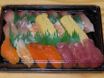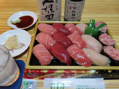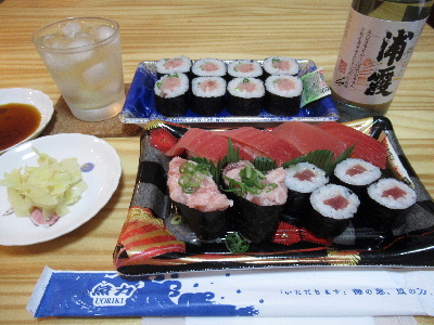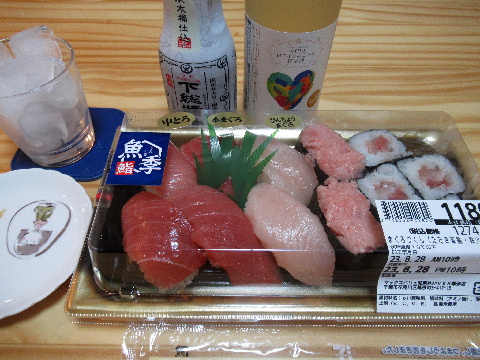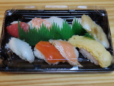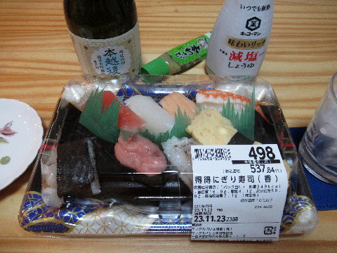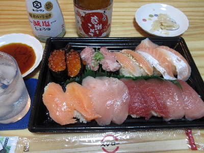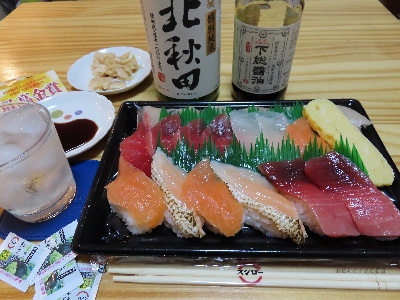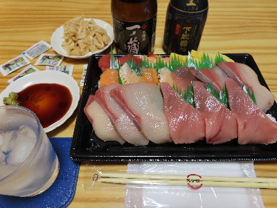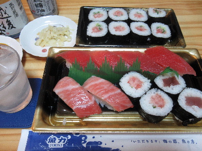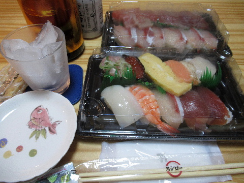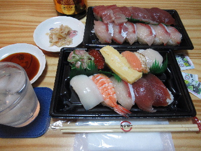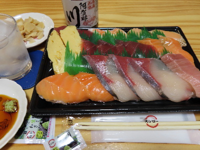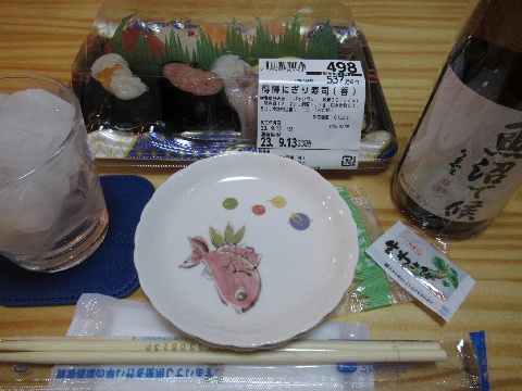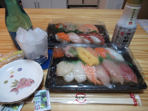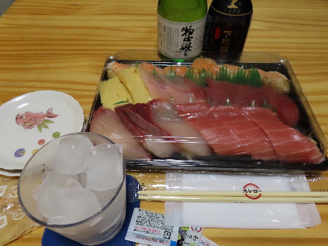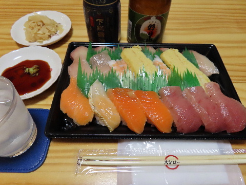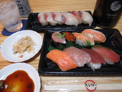 この日の晩酌はここで買った寿司をつまみに日本酒を呑む。