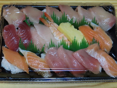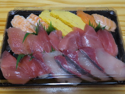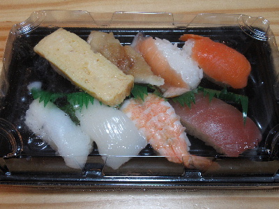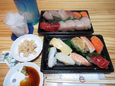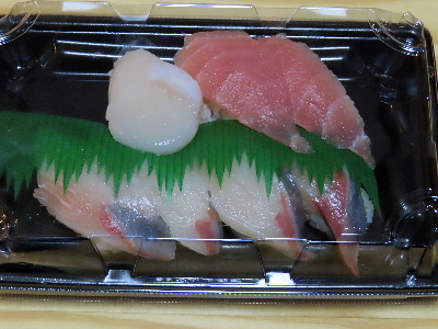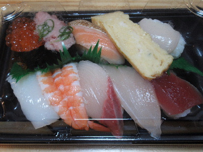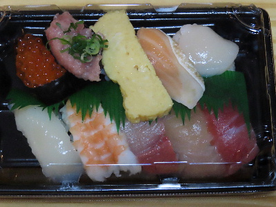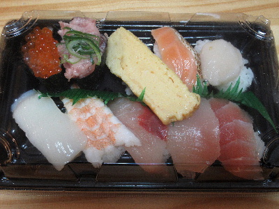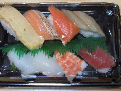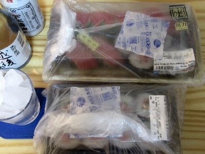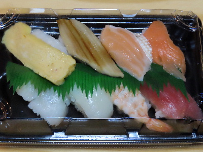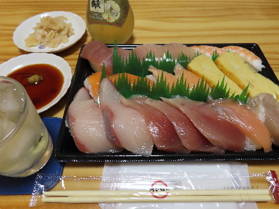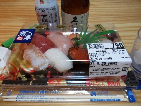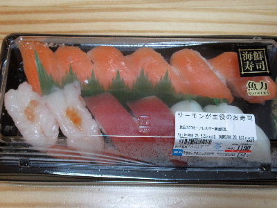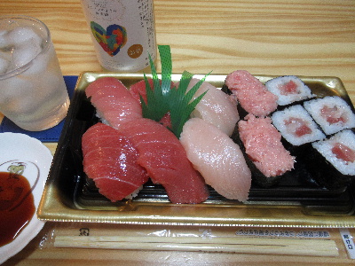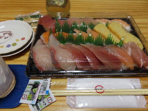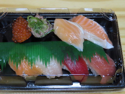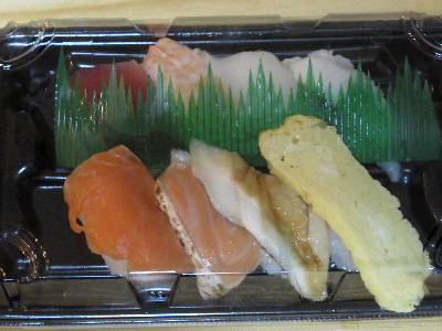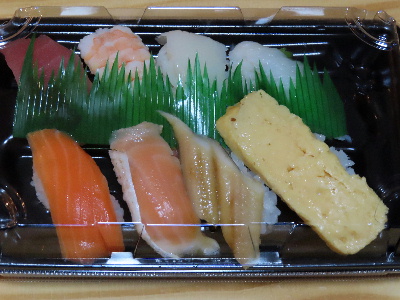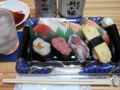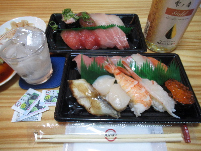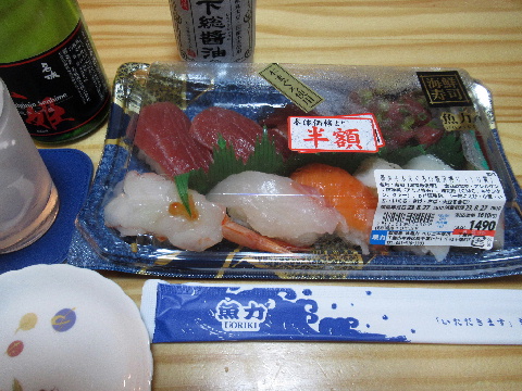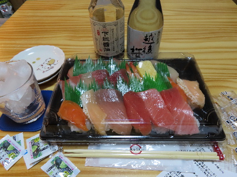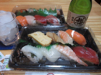 この日の晩酌はここで買った寿司で日本酒を呑む。