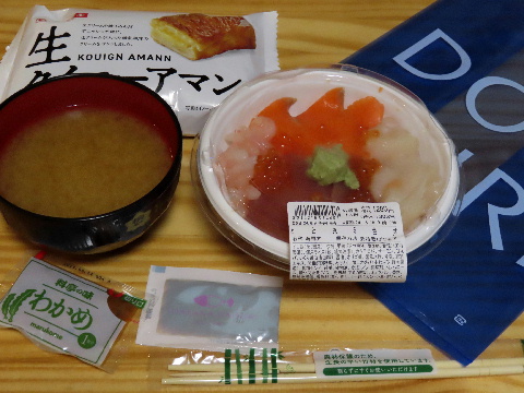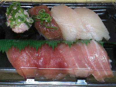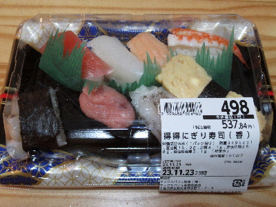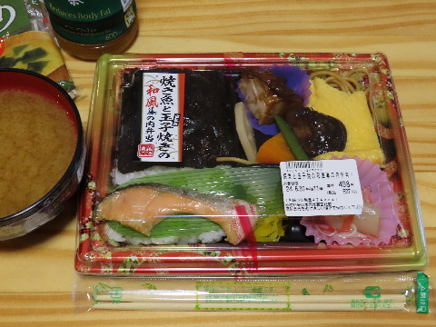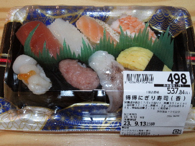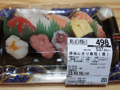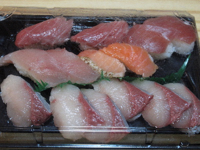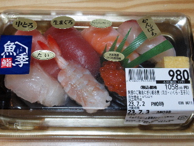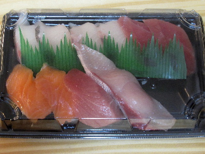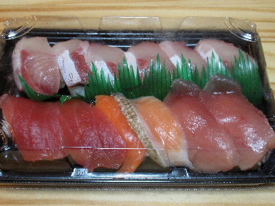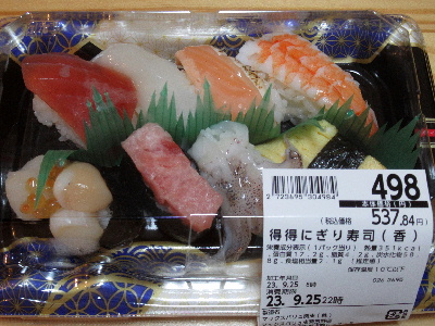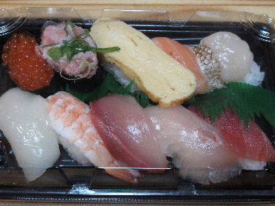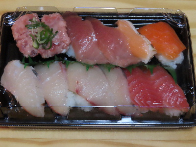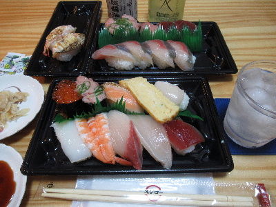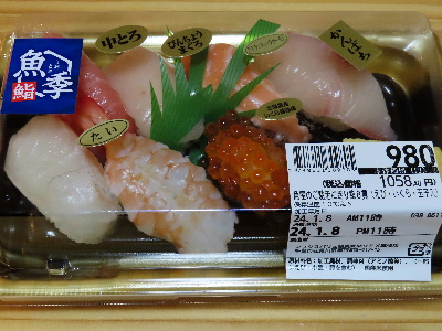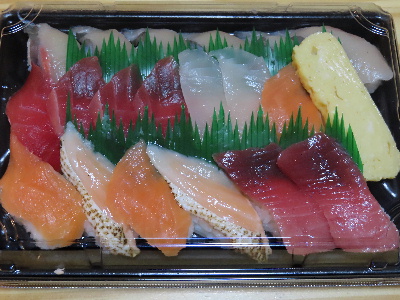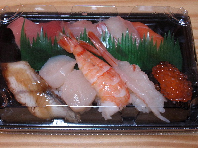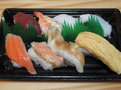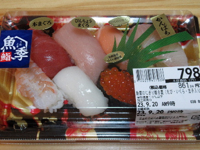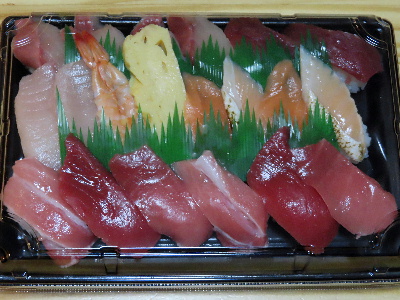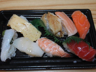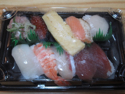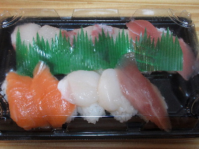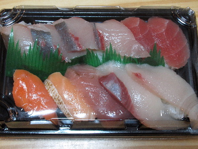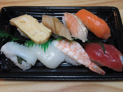 この日の晩酌はここで買った寿司で日本酒を呑む。