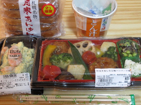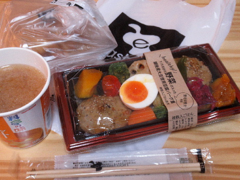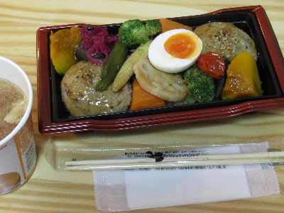 この日の夕食はここで購入した野菜を楽しむ豆腐ハンバーグ重815円と、