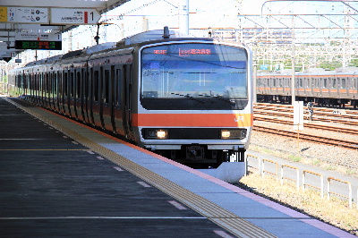 東船橋駅は緩行線のみが停車し、快速線にホームはない。