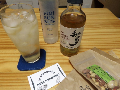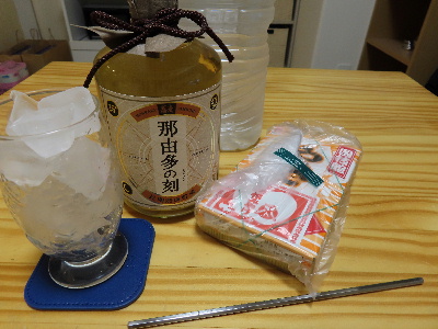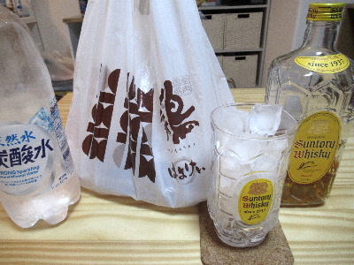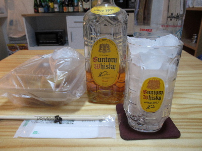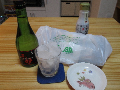 生貯蔵酒をオンザロックで、寿司をつまみに愉しんだ。