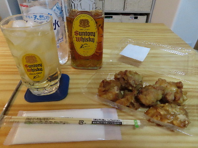 この日の晩酌はここで購入した若鶏の醤油唐揚をつまみに、