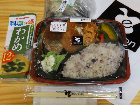 味噌汁も用意して、野菜を楽しむ豆腐ハンバーグ重を楽しんだ。