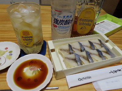 この日の晩酌は鰺の押寿しでウヰスキーソーダ割りを飲んだ。