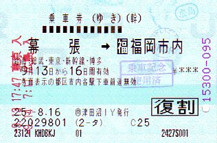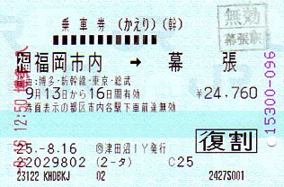 6月11日日曜日の東京から新大阪までの往復乗車券を購入した。