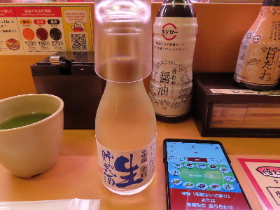 スシローの寿司で金沢の特別純米酒を愉しんだ。