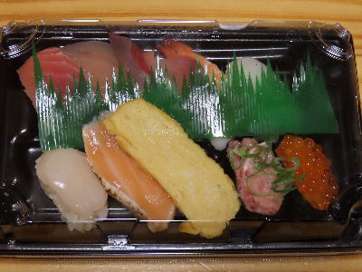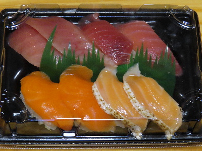 中とろ、まぐろ、サーモン、焼とろサーモンが各2貫ずつ。