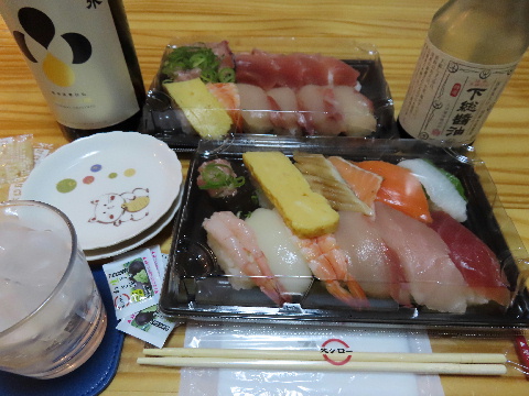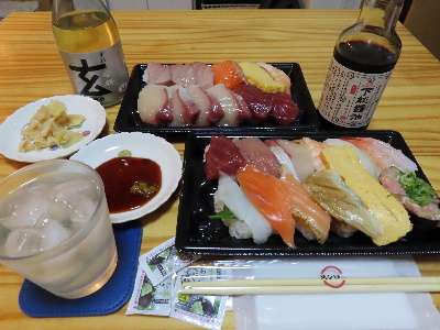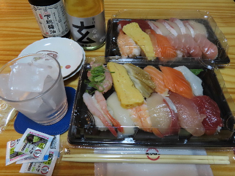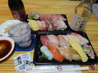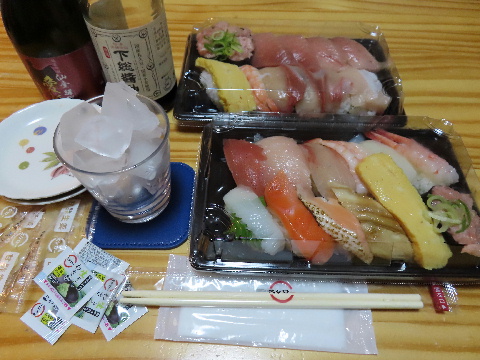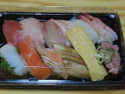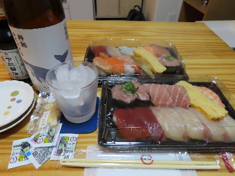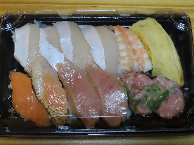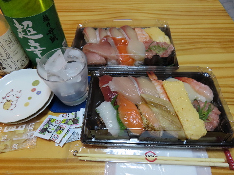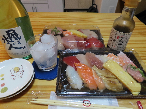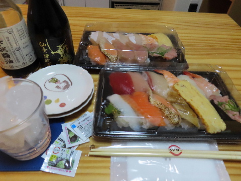 休憩中に発注した寿司を受け取って帰宅した。