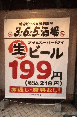 「格安ビールと鉄鍋餃子3・6・5酒場・藤沢店」で、
