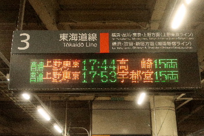 3番線ホームに上がり、上野東京ラインの17:44高崎行に乗る。