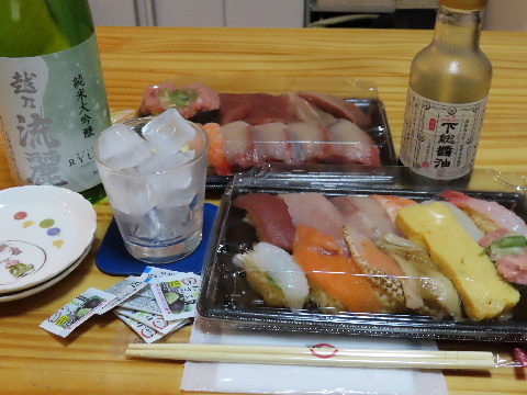 寿司をつまみに純米大吟醸酒を愉しんだ。
