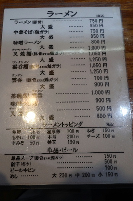 その反対側には「ラーメン」のメニューになっていた。