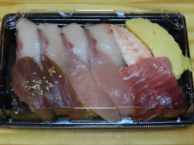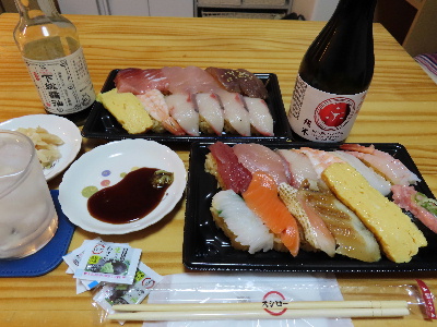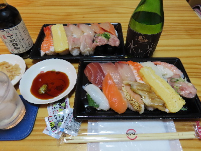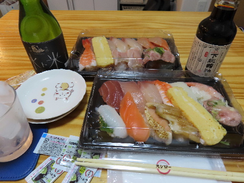 この日の晩酌はこの寿司で日本酒を飲む。