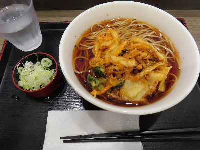 津田沼まで戻り、昼食は「いろり庵きらく」でかき揚げそば570円を喰う。