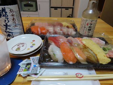 寿司をつまみに新潟の純米大吟醸を愉しんだ。